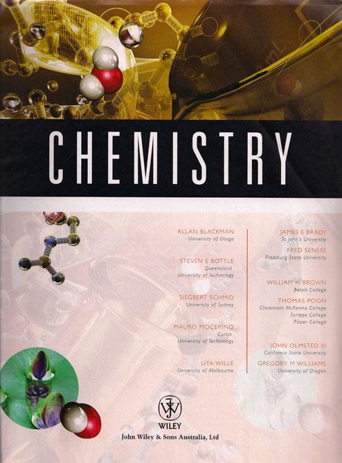 A. Blackman, S. E. Bottle, S. Schmid, M. Mocerino, U. Wille, J. E. Brady, F. Senese, W. H. Brown, T. Poon, J. Olmsted III, G. M. Williams, “Chemistry,” John Wiley & Sons Australia, Ltd.: Milton Qld, (2008) |